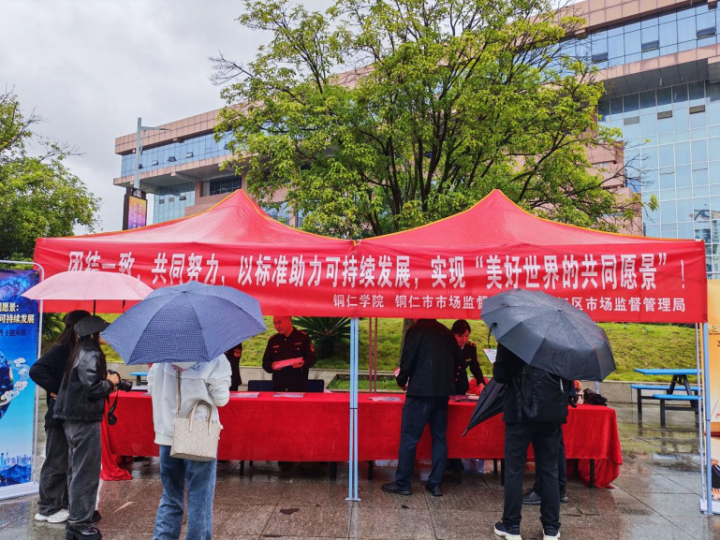 与专题讲座同步进行的,还有在铜仁学院丹桂食堂一楼开展的《标准化法》等法律法规现场宣传活动。市市场监管局工作人员通过设立宣传咨询台、悬挂“纪念第56个世界标准日”“标准塑造美好生活”等主题横幅,营造出浓厚的宣传氛围。面对驻足师生,工作人员不仅耐心解答“日常生活中哪些领域有标准”“企业如何参与标准制定”等疑问,还主动发放《中华人民共和国标准化法》《标准与标准化基础知识》等宣传折页,让标准化法律法规与基础常识真正走进师生生活。
